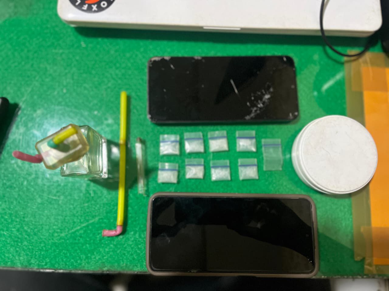 Penggeledahan lanjutan menemukan total 8 sachet sabu, satu bong, satu pirex, satu pipet, dan dua telepon genggam. Kedua terduga mengaku memperoleh sabu dari seseorang berinisial F, yang kini dalam pengejaran. Petugas mendatangi rumah F, namun tidak menemukan yang bersangkutan.